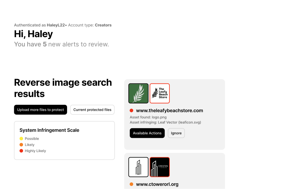 Our advanced reverse image search technology, powered by BrandDefender’s Generation 2 AI, can identify users who are violating your rules regarding the use of your designs and digital creations.